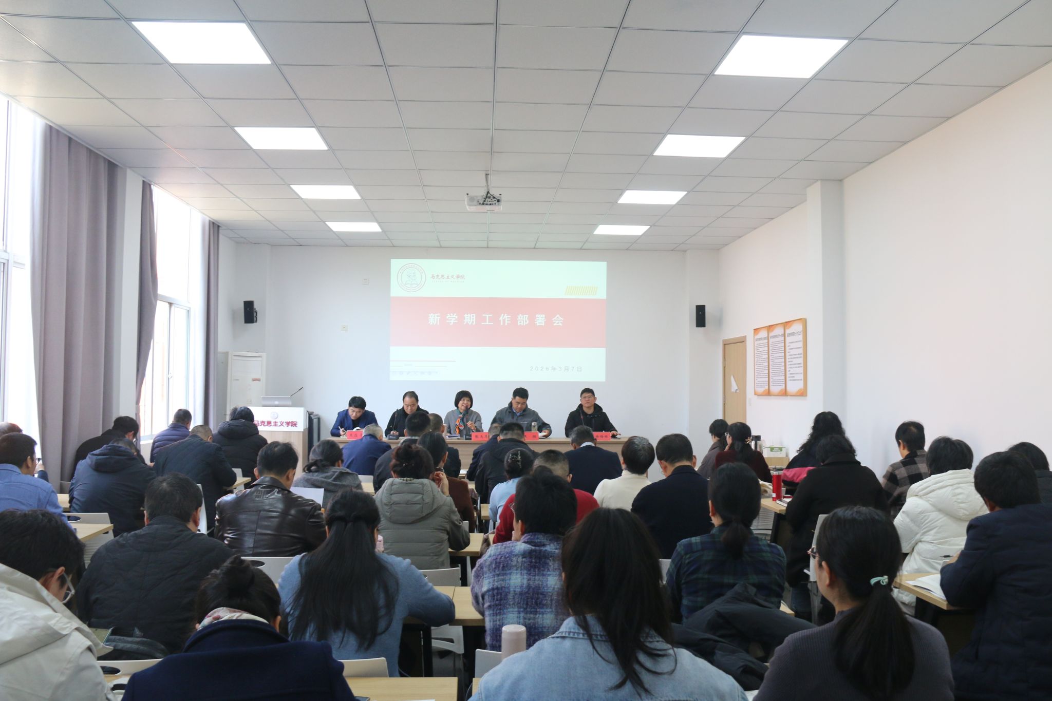 3月7日下午,马克思主义学院在临海校区召开新学期工作部署会议,会议由学院院长张天华主持,学院全体教职工参加会议。