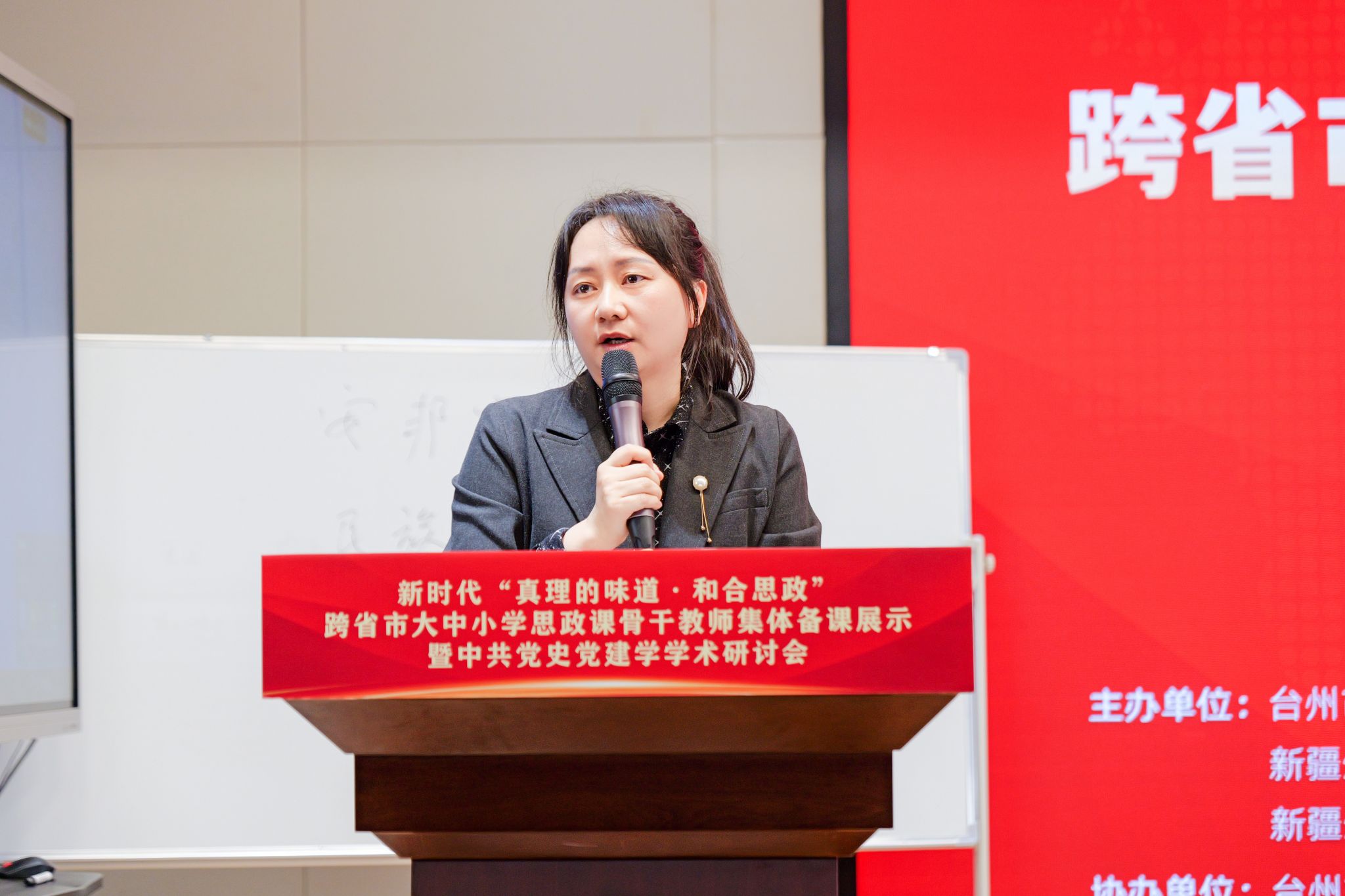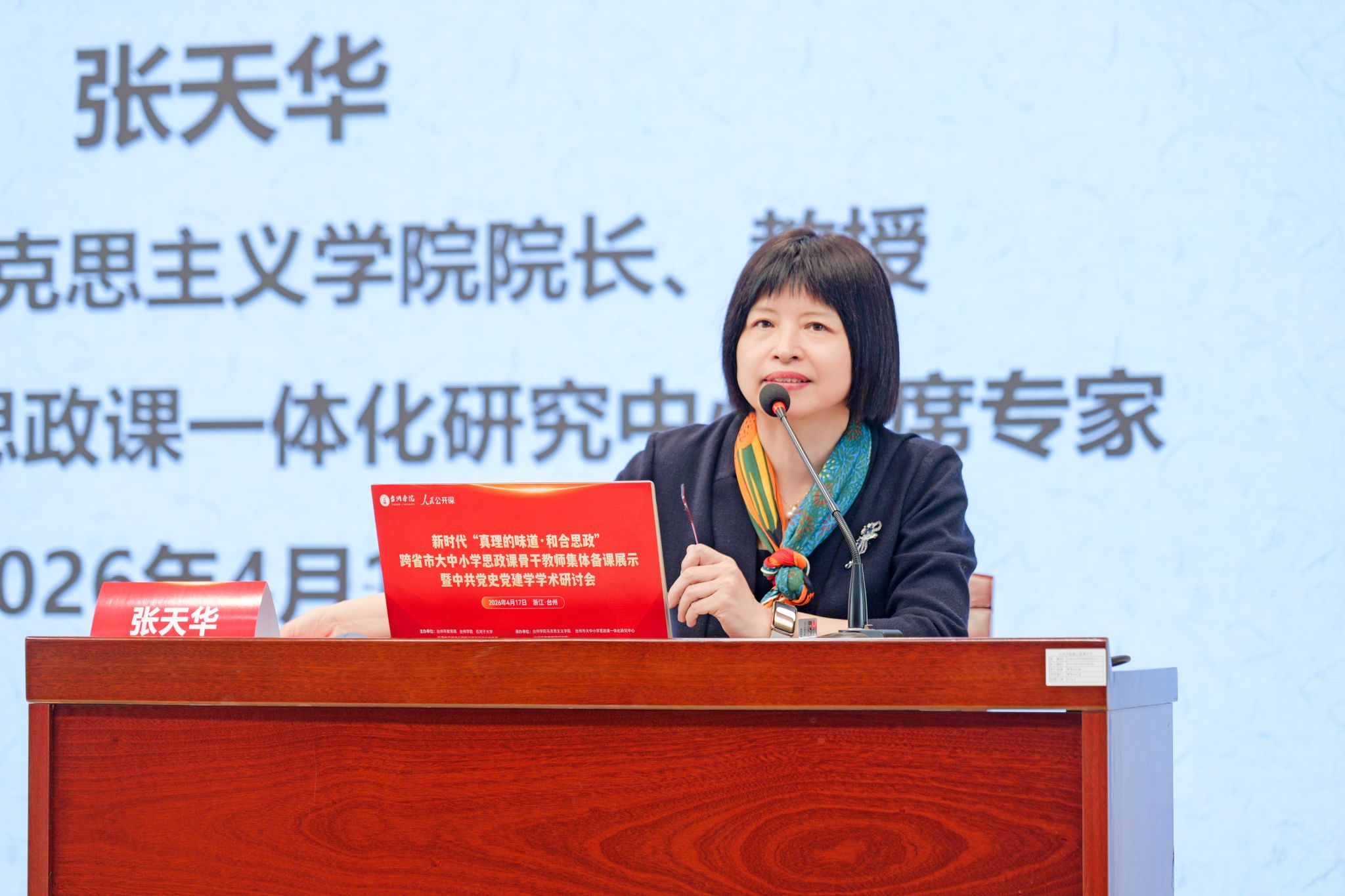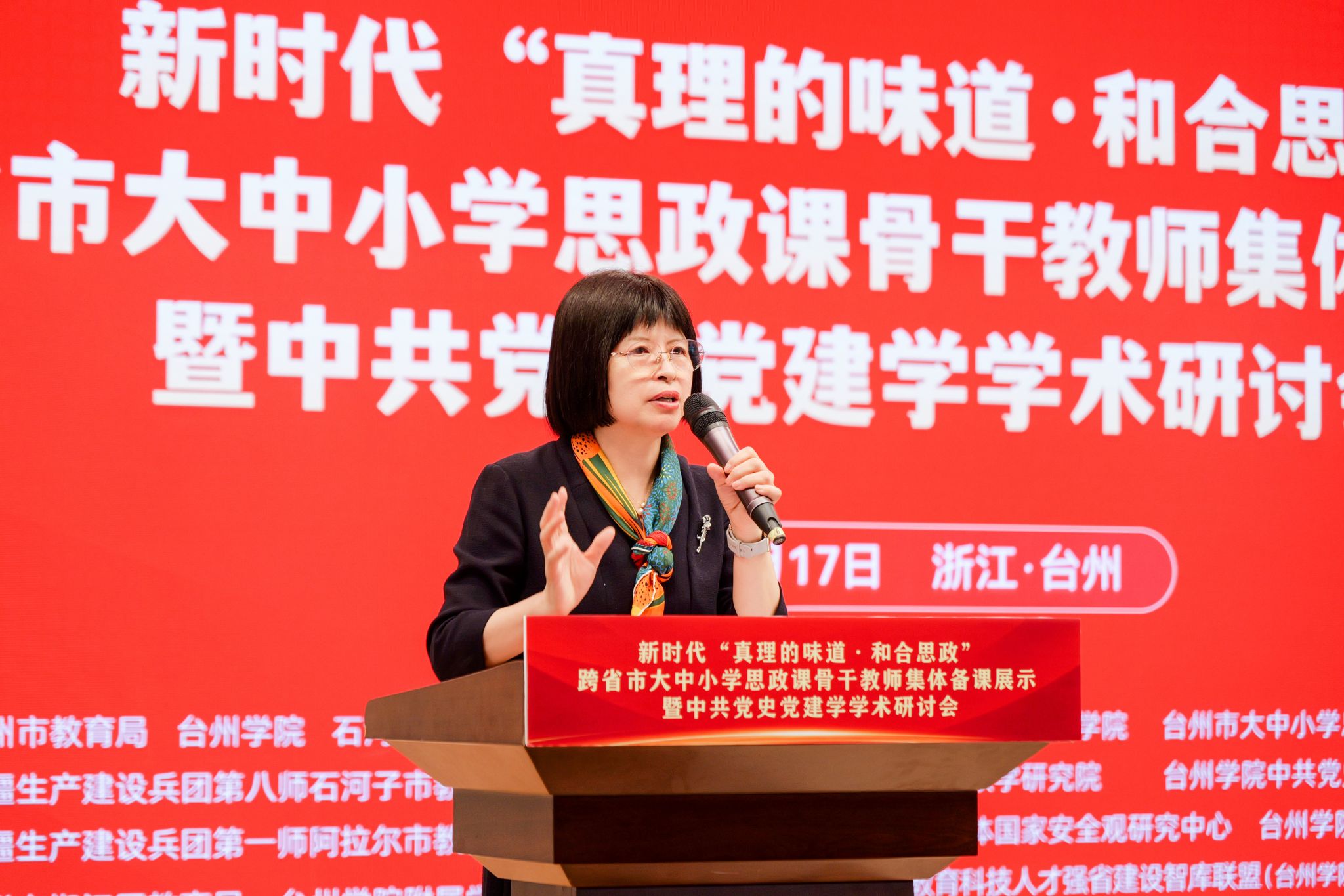 郑浩在讲话中指出,本次“真理的味道・和合思政”跨省市大中小学思政课骨干教师集体备课展示暨中共党史党建学学术研讨会,是深化思政课一体化建设、推动东西部协同育人的重要实践。他表示,台州持续推进大中小学思政教育一体化建设,“和合思政”品牌成果丰硕,相关实践荣获省级教学成果一等奖并入选教育部典型案例,学科平台不断夯实,与新疆生产建设兵团多地的教育合作持续深化。郑浩强调,思政课是落实立德树人根本任务的关键课程,全市思政战线要提高政治站位、强化理论武装,高校要发挥引领作用,教师要守正创新提升育人能力,持续深化跨区域交流协作,不断扩大“和合思政”影响力,为培养时代新人、谱写中国式现代化台州篇章贡献更大力量。