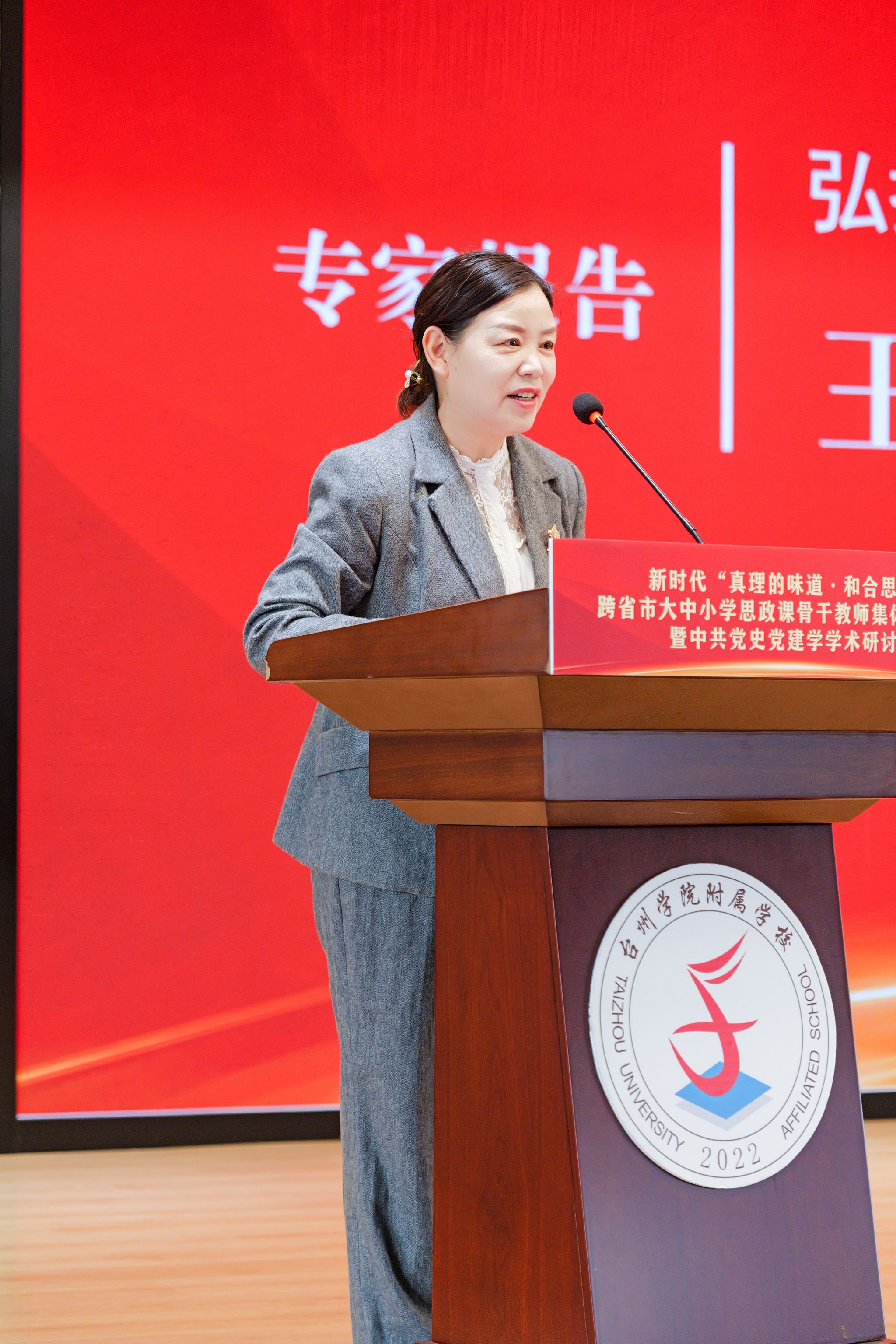 为深入学习贯彻党的二十大精神、落实立德树人根本任务,值此习近平总书记主持召开学校思想政治理论课教师座谈会并发表重要讲话七周年之际,2026年4月17日,由台州市教育局、台州学院、石河子大学、新疆第八师石河子教育局、新疆第一师阿拉尔市教育局联合主办,台州市大中小学思政课一体化研究中心、台州学院马克思主义学院、台州市教育教学研究院共同等共同承办的新时代“真理的味道・和合思政”跨省市大中小学思政课集体备课展示暨中共党史党建学学术研讨会在台州学院附属学校成功举行。