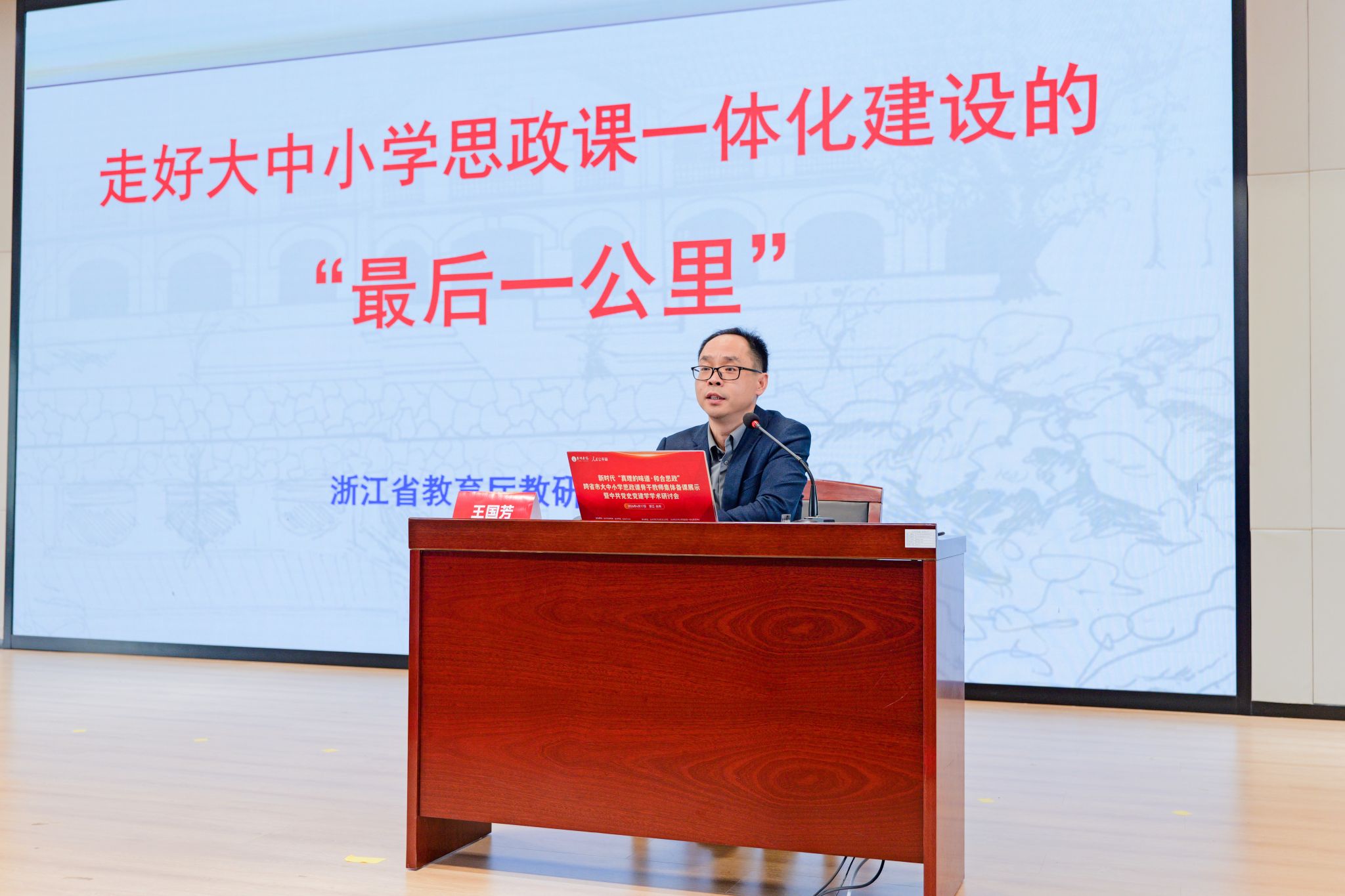 浙江省特级教师王国芳聚焦大中小学思政课一体化建设 “最后一公里” 关键难题作深入分享。他提出,推进思政教育一体化,核心是系统把握不同学段学生认知规律、成长特点与教与学的内在差异,在此基础上科学定位各学段教学目标、内容梯度与育人重点,推动思政教育循序渐进、螺旋上升。王国芳深刻阐释了 “求同” 与 “求异” 的辩证关系:大中小学思政课在根本方向、价值引领和育人目标上高度统一、一脉相承,既要坚持于同中求异,精准区分学段定位、明晰递进层次;也要坚持以异促同,通过差异化设计实现整体协同,避免内容重复与学段断层,切实提升思政课针对性、吸引力与实效性,打通育人关键链条,不断增强立德树人整体效能。
