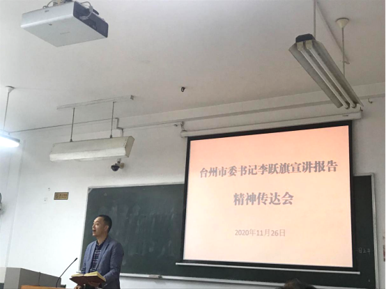 11月26日下午,马克思主义学院召开全院大会,集体学习台州市委书记李跃旗在我校所作的十九届五中全会精神和省委十四届八次全会精神宣讲报告。学院领导班子及全体教职工参加会议。