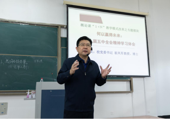 2020年11月13日,校党委书记崔凤军书记用一天的时间,分别走进材料科学、材料物理、助产学、康复治疗、视觉设计等专业的思政课堂,给同学们上了一堂《何以赢得未来:十九届五中全会精神学习体会》的精彩专题课。