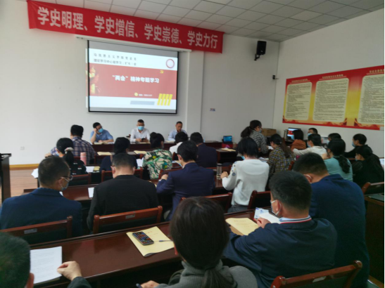 3月17日下午,马学院党总支召开理论学习中心组(扩大)学习会专题学习2022年全国“两会”精神,省委党校王元博士作专题辅导报告,学院党总支书记张礼强主持学习会,全院教职工参加会议。